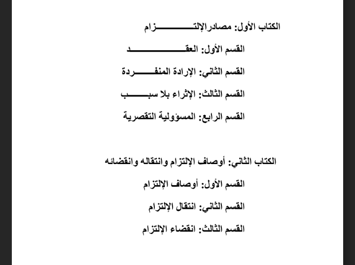 كتاب مصادر الالتزام وأوصاف الالتزام وانتقاله وانقضائه